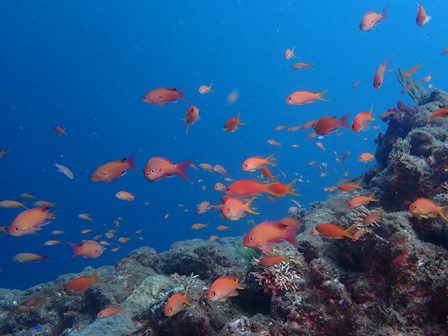 生物:ハナヒゲウツボ・ヤシャハゼ・クダゴンベ・ソメワケヤッコ・セナキルリスズメ・フリエイボウミウシ・ノコギリハギ・アオサハギ・セダカギンポ・ニシキフウライ・ミツボシクロスズメダイygの群れ・トラウツボ・アカマツカサの群れ・カンパチの群れ・キビナゴの群れ・キンメモドキの群れ・ソラスズメダイygの群れ・ゴンズイの群れ・クロユリハゼygの群れ・クロホシフエダイの群れ・フエダイの群れ・ヒメジの群れ・ツマグロハタンポの群れ・アイゴの群れ・メジナの群れ・イスズミの群れ・ニザダイの群れ・キンギョハナダイの群れ・イッセンタカサゴygの群れ・スズメダイの群れ・イサキの群れ・クロホシイシモチの群れ・オオモンハタの群れ 他