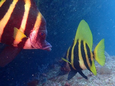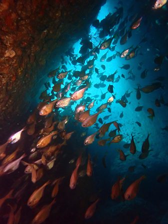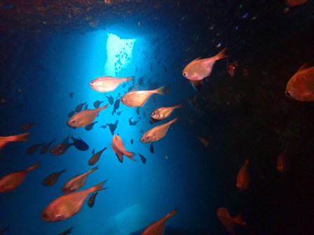 生物:コロダイ・コブダイ・ハマフエフキ・フエダイ・ウツボ・トラウツボ・イワシの群れ・キビナゴの群れ・シマアジygの群れ・キンメモドキの群れ・サッパの群れ・アジygの群れ・ムツygの群れ・ツマグロハンポの群れ・ゴンズイの群れ・イシガキフグの群れ・イッセンタカサゴの群れ・シラコダイの群れ・クロホシイシモチの群れ・イスズミの群れ・ニザダイの群れ・キンギョハナダイの群れ 他