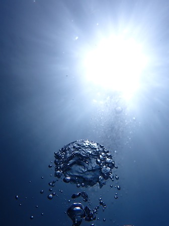 ダイバーの泡も青だしオテントサマあるし