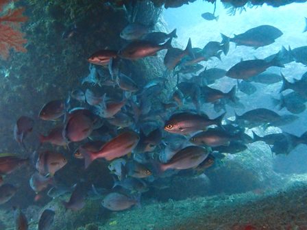 生物:ボラの群れ・テングダイ4・クエ・ベニカエルアンコウ・オオモンカエルアンコウ・ハコフグyg・マダイ・メジナの群れ・イワシの群れ・キビナゴの群れ・シマアジygの群れ・キンメモドキの群れ・サッパの群れ・アジygの群れ・ムツygの群れ・ツマグロハンポの群れ・ゴンズイの群れ・イシガキフグの群れ・イッセンタカサゴの群れ・シラコダイの群れ・クロホシイシモチの群れ・イスズミの群れ・ニザダイの群れ・キンギョハナダイの群れ 他