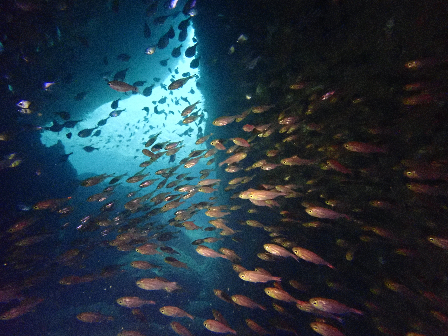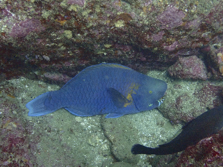 Hの穴を抜けた先にアオブダイが横たわって休憩中💤