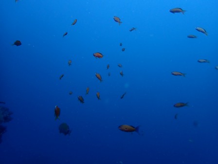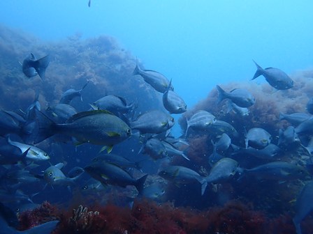 生物:オオモンカエルアンコウ・イロカエルアンコウyg・ワタユキシボリガイ・アオウミウシ・ミヤケウミウシ・イサキの群れ・メジナの群れ・イスズミの群れ・キンメモドキの群れ・サッパの群れ・アジygの群れ・ムツygの群れ・ツマグロハンポの群れ・ゴンズイの群れ・イシガキフグの群れ・イッセンタカサゴの群れ・クロホシイシモチの群れ・キンセンイシモチの群れ・オオスジイシモチの群れ・アカマツカサの群れ・ニザダイの群れ・キンギョハナダイの群れ 他
