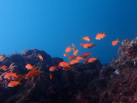 生物:イロカエルアンコウ・オオモンカエルアンコウ・クダゴンベ・アカネコモンウミウシ・キイロイボウミウシ・オトヒメエビ・ニジギンポの群れ・イサキの群れ・メジナの群れ・イスズミの群れ・ホウライヒメジの群れ・キンメモドキの群れ・キビナゴの群れ・ツマグロハンポの群れ・イシガキフグの群れ・イッセンタカサゴの群れ・クロホシイシモチの群れ・キンセンイシモチの群れ・オオスジイシモチの群れ・アカマツカサの群れ・ニザダイの群れ・キンギョハナダイの群れ 他