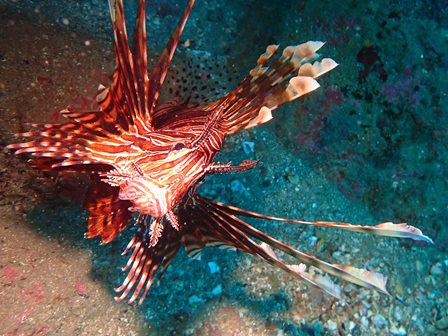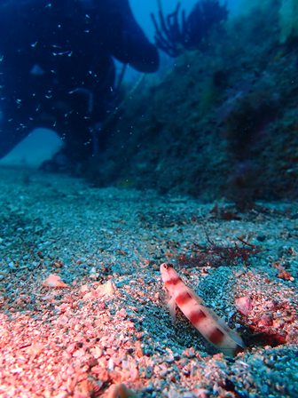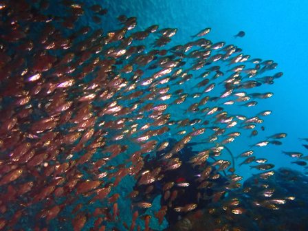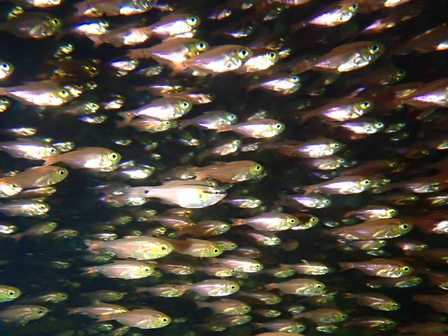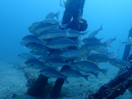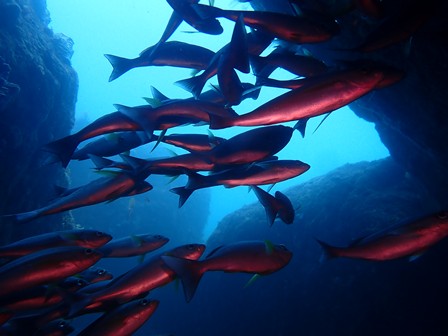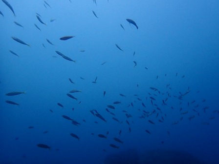 生物:オオモンカエルアンコウ・ネジリンボウ・ハチジョウタツ・クエ・アオウミガメ・イナダの群れ・イタチウオの群れ・ニジギンポの群れ・イサキの群れ・メジナの群れ・イスズミの群れ・ホウライヒメジの群れ・キンメモドキの群れ・イワシの群れ・ツマグロハンポの群れ・イシガキフグの群れ・イッセンタカサゴの群れ・クロホシイシモチの群れ・キンセンイシモチの群れ・オオスジイシモチの群れ・アカマツカサの群れ・ニザダイの群れ・キンギョハナダイの群れ 他