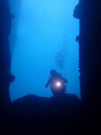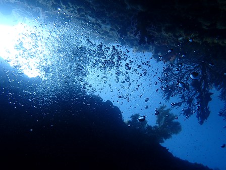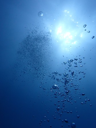 ダイバーの泡もナナメに上昇です