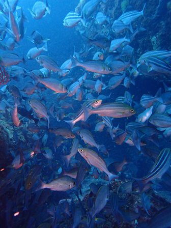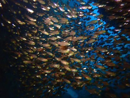 生物:ハナイカ・チンアナゴ・ハナハゼ・ヒレナガネジリンボウ・ネジリンボウ・オオモンカエルアンコウ・セリスイロウミウシ・アオリイカの群れ・ハチジョウタツ・トビエイ・ハナオトメウミウシの群れ・イタチウオの群れ・ニジギンポの群れ・イサキの群れ・メジナの群れ・イスズミの群れ・ホウライヒメジの群れ・キンメモドキの群れ・キビナゴの群れ・ツマグロハンポの群れ・イシガキフグの群れ・イッセンタカサゴの群れ・クロホシイシモチの群れ・キンセンイシモチの群れ・オオスジイシモチの群れ・アカマツカサの群れ・ニザダイの群れ・キンギョハナダイの群れ 他