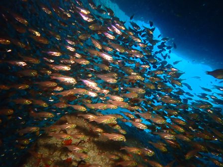 生物:オオモンカエルアンコウ・ネジリンボウ・ニシキフウライウオ・クエ・キャラメルウミウシ・キイボキヌハダウミウシ・ジャンボアメフラシの群れ・クロホシフエダイの群れ・ハマフエフキの群れ・メイチダイの群れ・ゴンズイygの群れ・オヤビッチャygの群れ・ソラスズメダイの群れ・イタチウオの群れ・ニジギンポの群れ・イサキの群れ・メジナの群れ・イスズミの群れ・ホウライヒメジの群れ・キンメモドキの群れ・キビナゴの群れ・ツマグロハンポの群れ・イシガキフグの群れ・イッセンタカサゴの群れ・クロホシイシモチの群れ・キンセンイシモチの群れ・オオスジイシモチの群れ・アカマツカサの群れ・ニザダイの群れ・キンギョハナダイの群れ 他