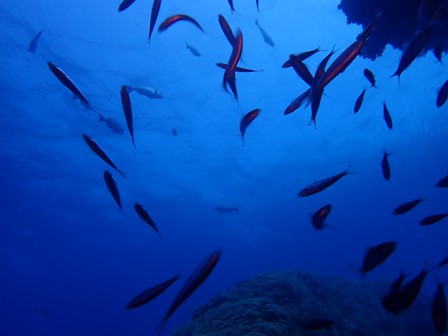 生物:カンパチygの群れ・ブリygの群れ・キビナゴygの群れ・ネンブツダイygの群れタカベygの群れ・シマアジygの群れ・ソラスズメダイygの群れ・イッセンタカサゴygの群れ・オヤビッチャygの群れ・クロホシフエダイの群れ・フエダイの群れ・イタチウオの群れ・イサキの群れ・メジナの群れ・イスズミの群れ・ホウライヒメジの群れ・キンメモドキの群れ・キビナゴの群れ・ツマグロハンポの群れ・イシガキフグの群れ・ニザダイの群れ 他