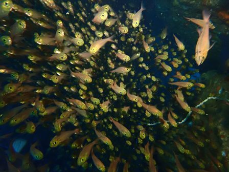 生物:メダイyg・カメ・オオウミウマ・ヒレナガネジリンボウ・ヤシャハゼ・ネジリンボウ・カンパチygの群れ・ブリygの群れ・キビナゴygの群れ・ネンブツダイygの群れタカベygの群れ・ソラスズメダイygの群れ・イッセンタカサゴygの群れ・オヤビッチャygの群れ・クロホシフエダイの群れ・フエダイの群れ・イサキの群れ・メジナの群れ・イスズミの群れ・ホウライヒメジの群れ・キンメモドキの群れ・キビナゴの群れ・ツマグロハンポの群れ・ニザダイの群れ 他