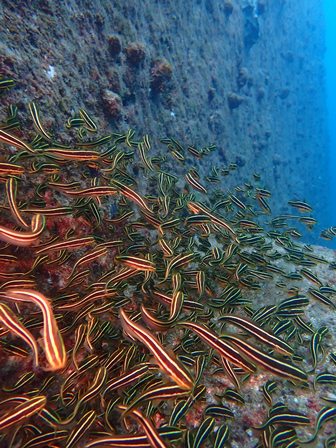 生物:ブリの群れ・コロダイの群れ・ハナミノカサゴの群れ・シラコダイの群れ・カンパチygの群れ・ゴンズイの群れ・キビナゴygの群れ・ネンブツダイygの群れ・アカマツカサの群れ・タカベygの群れ・ソラスズメダイygの群れ・イッセンタカサゴygの群れ・オヤビッチャygの群れ・クロホシフエダイの群れ・フエダイの群れ・イサキの群れ・メジナの群れ・イスズミの群れ・ホウライヒメジの群れ・キンメモドキの群れ・キビナゴの群れ・ツマグロハンポの群れ・ニザダイの群れ 他