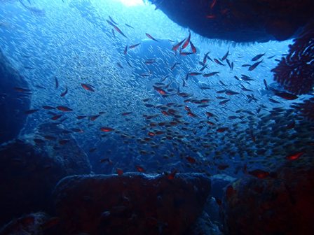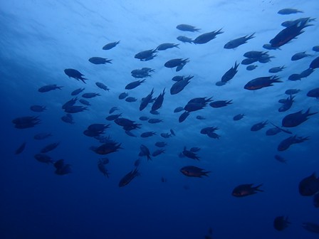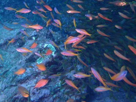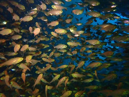 生物:カゴカキダイの群れ・メイチダイの群れ・コロダイの群れ・ハナミノカサゴの群れ・シラコダイの群れ・カンパチygの群れ・ゴンズイの群れ・キビナゴygの群れ・ネンブツダイygの群れ・アカマツカサの群れ・タカベygの群れ・ソラスズメダイygの群れ・イッセンタカサゴygの群れ・オヤビッチャygの群れ・クロホシフエダイの群れ・フエダイの群れ・イサキの群れ・メジナの群れ・イスズミの群れ・ホウライヒメジの群れ・キンメモドキの群れ・キビナゴの群れ・ツマグロハンポの群れ・ニザダイの群れ 他