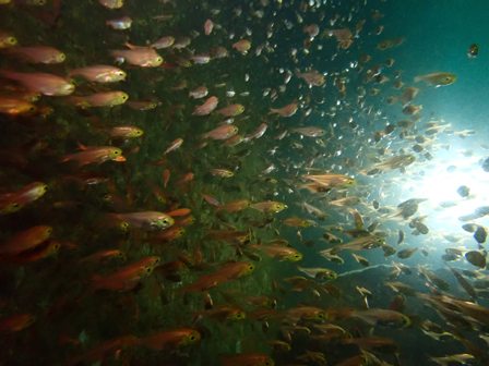 生物:オオモンカエルアンコウ・アオウミウシ・コショウダイ・タコ・アオサハギyg・イセエビ・ハナミノカサゴの群れ・カゴカキダイの群れ・ネンブツダイygの群れ・アカマツカサの群れ・タカベygの群れ・ソラスズメダイygの群れ・イッセンタカサゴygの群れ・オヤビッチャygの群れ・クロホシフエダイの群れ・フエダイの群れ・イサキの群れ・メジナの群れ・イスズミの群れ・ホウライヒメジの群れ・キンメモドキの群れ・ツマグロハンポの群れ・ニザダイの群れ 他