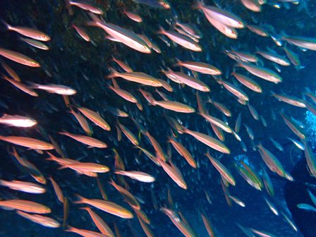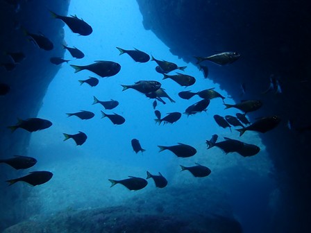 生物:アオウミガメ・モヨウモンガラドオシ・トラウツボ・センテンイロウミウシ・オオウミウマ・キャラメルウミウシ・イシガキダイ・コロダイ・ハナミノカサゴの群れ・カゴカキダイの群れ・ネンブツダイygの群れ・アカマツカサの群れ・タカベygの群れ・ソラスズメダイygの群れ・イッセンタカサゴygの群れ・オオスジイシモチの群れ・クロホシフエダイの群れ・オオモンハタの群れ・イサキの群れ・メジナの群れ・イスズミの群れ・ホウライヒメジの群れ・キンメモドキの群れ・ツマグロハンポの群れ・ニザダイの群れ 他