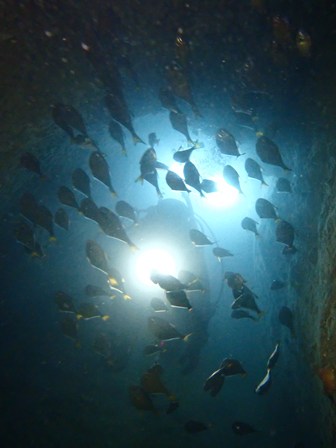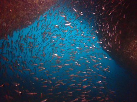 生物:オオモンカエルアンコウ・ブリの群れ・アオウミガメ・テングダイ・タコ・ニシキウミウシ・クリアクリーナーシュリンプ・タイワンカマスの群れ・ハナミノカサゴの群れ・カゴカキダイの群れ・ネンブツダイygの群れ・アカマツカサの群れ・タカベygの群れ・ソラスズメダイygの群れ・イッセンタカサゴygの群れ・オオスジイシモチの群れ・クロホシフエダイの群れ・オオモンハタの群れ・イサキの群れ・メジナの群れ・イスズミの群れ・ホウライヒメジの群れ・キンメモドキの群れ・ツマグロハンポの群れ・ニザダイの群れ・スカシテンジクダイの群れ 他