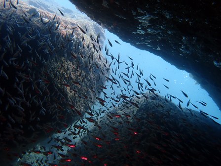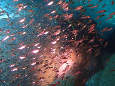 生物:カメ・コショウダイ・タコ・ヘラヤガラ・イセエビ・タイワンカマスの群れ・ハナミノカサゴの群れ・カゴカキダイの群れ・ネンブツダイygの群れ・アカマツカサの群れ・タカベygの群れ・ソラスズメダイygの群れ・イッセンタカサゴygの群れ・オオスジイシモチの群れ・クロホシフエダイの群れ・オオモンハタの群れ・イサキの群れ・メジナの群れ・イスズミの群れ・ホウライヒメジの群れ・キンメモドキの群れ・ツマグロハンポの群れ・ニザダイの群れ・スカシテンジクダイの群れ 他