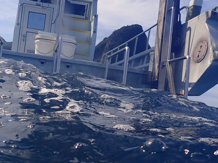 最後は自慢のラダーが、海の中まで下りて