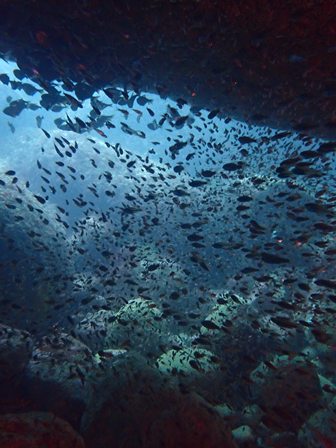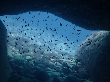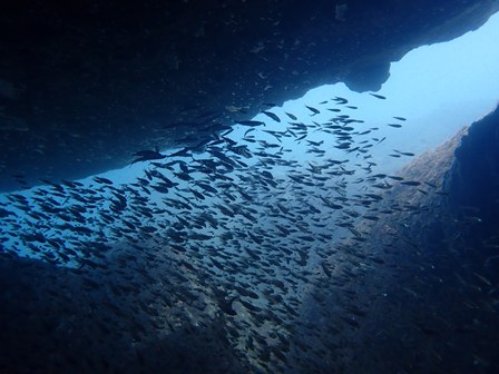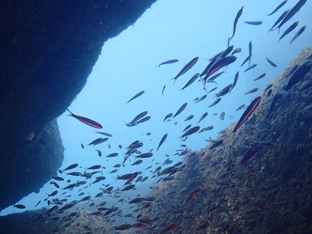 生物:テングダイ・ヘラヤガラ・オオウミウマ・オオモンカエルアンコウ・コロダイ・クマノミ・イシガキダイ・ムロアジの群れ・カゴカキダイの群れ・ネンブツダイygの群れ・アカマツカサの群れ・タカベygの群れ・ソラスズメダイygの群れ・イッセンタカサゴygの群れ・クロホシフエダイの群れ・オオモンハタの群れ・イサキの群れ・メジナの群れ・ホウライヒメジの群れ・キンメモドキの群れ・ツマグロハンポの群れ・ニザダイの群れ・スカシテンジクダイの群れ 他