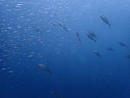 中層には本マグロの幼魚のメジマグロの群れがグルグル↺↺