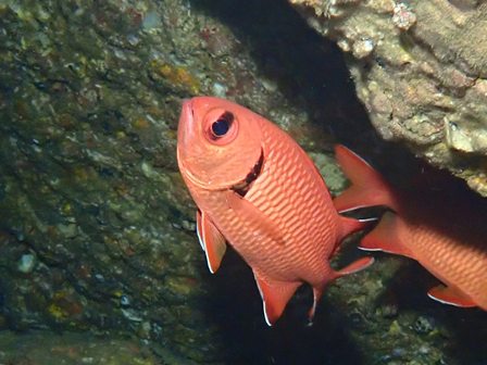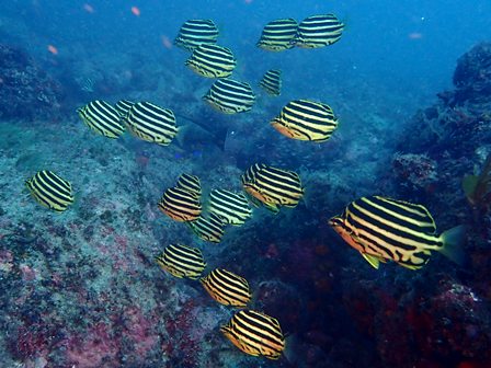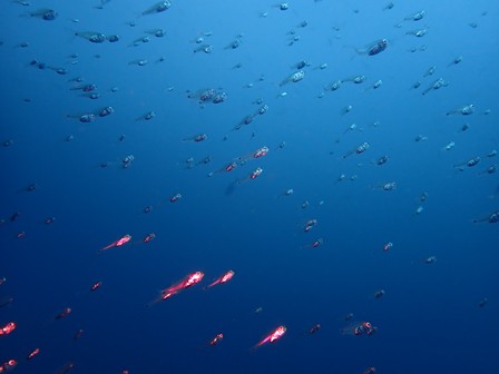 生物:イロカエルアンコウ・オオウミウマ・クマノミ・アカシマシラヒゲエビ・コイボウミウシ・キビナゴygの群れ・ネンブツダイygの群れ・スズメダイの群れ・アカマツカサの群れ・ソラスズメダイygの群れ・イッセンタカサゴygの群れ・クロホシフエダイの群れ・オオモンハタの群れ・イサキの群れ・メジナの群れ・ホウライヒメジの群れ・キンメモドキの群れ・ツマグロハンポの群れ・ニザダイの群れ・スカシテンジクダイの群れ 他