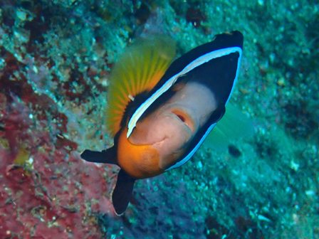 お家のイソギンチャクに帰るのが大変になっちゃってるクマノミちゃん♪