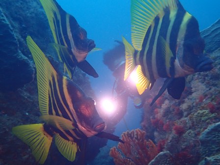 生物:イロカエルアンコウ・オオモンカエルアンコウ・タコ・クリアクリーナーシュリンプ・アカシマシラヒゲエビ・オトヒメエビ・テングダイ・シマアジの群れ・ゴンズイygの群れ・ネンブツダイygの群れ・スズメダイの群れ・アカマツカサの群れ・ソラスズメダイygの群れ・イッセンタカサゴygの群れ・クロホシフエダイの群れ・オオモンハタの群れ・イサキの群れ・メジナの群れ・ホウライヒメジの群れ・キンメモドキの群れ・ツマグロハンポの群れ・ニザダイの群れ・スカシテンジクダイの群れ 他