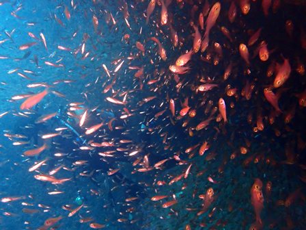 生物:タコ・ツムブリygの群れ・ニジギンポの群れ・オヤビッチャの群れ・アオリイカygの群れ・コガネスズメダイygの群れ・ツノダシの群れ・キビナゴの群れ・シマアジの群れ・ゴンズイygの群れ・ネンブツダイygの群れ・スズメダイの群れ・アカマツカサの群れ・ソラスズメダイygの群れ・イッセンタカサゴygの群れ・クロホシフエダイの群れ・オオモンハタの群れ・イサキの群れ・メジナの群れ・ホウライヒメジの群れ・キンメモドキの群れ・ツマグロハンポの群れ・ニザダイの群れ・スカシテンジクダイの群れ 他