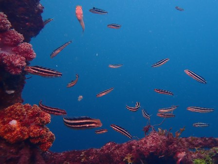 生物:オオモンカエルアンコウ・イロカエルアンコウ・ウツボyg・ソメワケヤッコyg・・ニジギンポの群れ・オヤビッチャの群れ・アオリイカygの群れ・コガネスズメダイygの群れ・ツノダシの群れ・キビナゴの群れ・シマアジの群れ・ゴンズイygの群れ・ネンブツダイygの群れ・スズメダイの群れ・アカマツカサの群れ・ソラスズメダイygの群れ・イッセンタカサゴygの群れ・クロホシフエダイの群れ・オオモンハタの群れ・イサキの群れ・メジナの群れ・ホウライヒメジの群れ・キンメモドキの群れ・ツマグロハンポの群れ・ニザダイの群れ・スカシテンジクダイの群れ 他