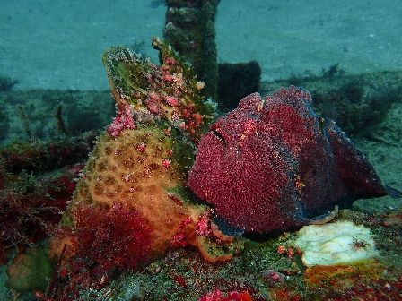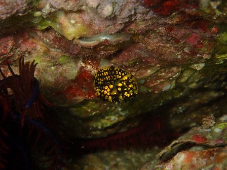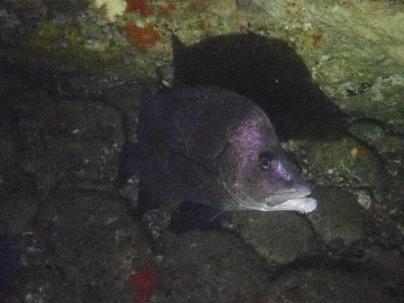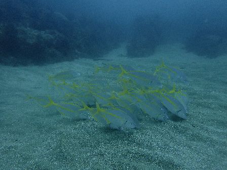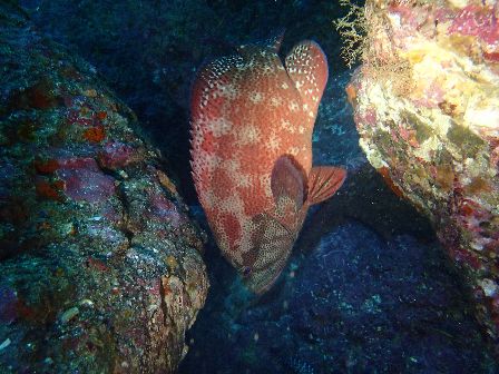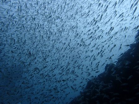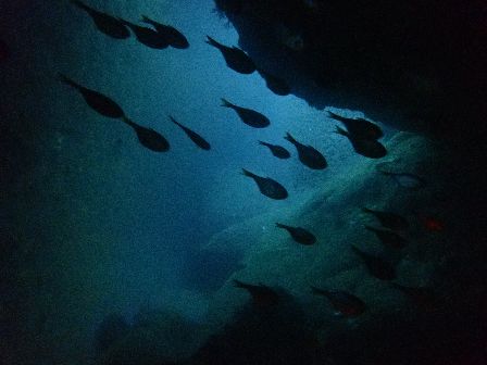 洞窟付近にはキンメモドキやテンジクダイ科の幼魚など群れ群れ