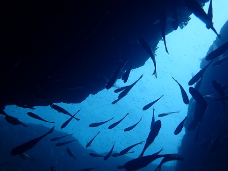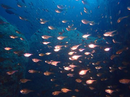 生物:イロカエルアンコウ・オオモンカエルアンコウ・オオウミウマ・タコ・イセエビ・イタチウオ・ニジギンポの群れ・オヤビッチャの群れ・キビナゴの群れ・シマアジの群れ・ゴンズイygの群れ・ネンブツダイygの群れ・スズメダイの群れ・アカマツカサの群れ・ソラスズメダイygの群れ・イッセンタカサゴygの群れ・クロホシフエダイの群れ・オオモンハタの群れ・イサキの群れ・メジナの群れ・ホウライヒメジの群れ・キンメモドキの群れ・ツマグロハンポの群れ・ニザダイの群れ・スカシテンジクダイの群れ 他