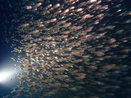 途中、キビナゴシャワーや