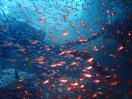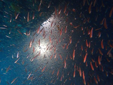 生物:イロカエルアンコウ・オオモンカエルアンコウ・ミチヨミノウミウシ・ブリ・カンパチ・テングダイ・ニジギンポの群れ・キビナゴの群れ・ネンブツダイygの群れ・スズメダイの群れ・ソラスズメダイygの群れ・イッセンタカサゴygの群れ・オオモンハタの群れ・イサキの群れ・メジナの群れ・ホウライヒメジの群れ・キンメモドキの群れ・ツマグロハンポの群れ・ニザダイの群れ・ 他