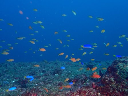 生物:イシガキダイ・コガネキュウセンyg・タテジマキンチャクダイyg・マツカサウオyg・アカハチハゼyg・チャシボリガイ・ミスガイ・アオウミウシ・カゴカキダイの群れ・ゴンズイの群れ・キビナゴの群れ・ネンブツダイygの群れ・スズメダイの群れ・ソラスズメダイygの群れ・イッセンタカサゴygの群れ・コガネスズメダイの群れ・キンギョハナダイの群れ・オオモンハタの群れ・イスズミの群れ・メジナの群れ・ホウライヒメジの群れ・キンメモドキの群れ・ツマグロハンポの群れ・ニザダイの群れ 他