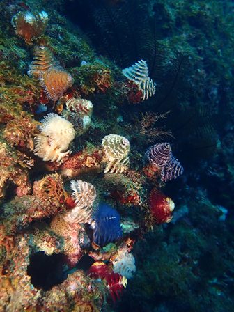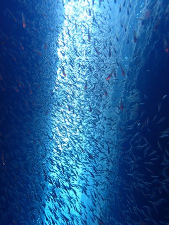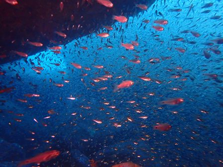 生物:イロカエルアンコウ・クマノミ・ゴシキエビyg・ウツボ・コショウダイの群れ・キビナゴの群れ・ネンブツダイygの群れ・スズメダイの群れ・ソラスズメダイygの群れ・イッセンタカサゴygの群れ・コガネスズメダイの群れ・キンギョハナダイの群れ・オオモンハタの群れ・イスズミの群れ・メジナの群れ・ホウライヒメジの群れ・キンメモドキの群れ・ツマグロハンポの群れ・スカシテンジクダイの群れ 他
