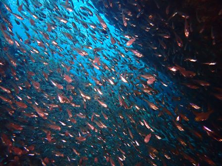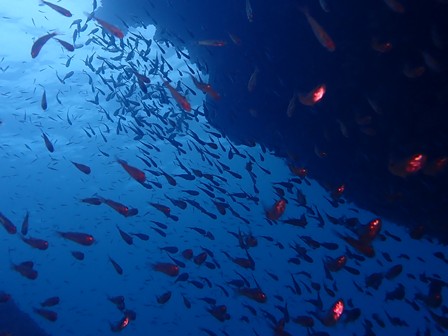 生物:オオモンカエルアンコウ・カンパチ・シマアジ・コロダイ・ヤシャハゼ・ヒラメ・イシガキフグの群れ・ゴンズイの群れ・カゴカキダイの群れ・キビナゴの群・ネンブツダイygの群れ・スズメダイの群れ・ソラスズメダイygの群れ・イッセンタカサゴygの群れ・コガネスズメダイの群れ・キンギョハナダイの群れ・オオモンハタの群れ・イスズミの群れ・メジナの群れ・ホウライヒメジの群れ・キンメモドキの群れ・ツマグロハンポの群れ・スカシテンジクダイの群れ 他