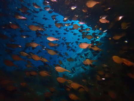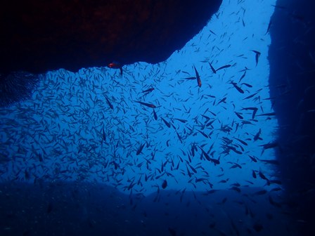 生物:アオウミウシ・アデヤカミノウミウシ・ユビワミノウミウシ・フジエラミノウミウシ・キイボキヌハダウミウシ・アオリイカの群れ・イシガキフグの群れ・カゴカキダイの群れ・キビナゴの群・ネンブツダイygの群れ・スズメダイの群れ・ソラスズメダイygの群れ・イッセンタカサゴygの群れ・コガネスズメダイの群れ・キンギョハナダイの群れ・オオモンハタの群れ・イスズミの群れ・メジナの群れ・ホウライヒメジの群れ・キンメモドキの群れ・ツマグロハンポの群れ・スカシテンジクダイの群れ 他