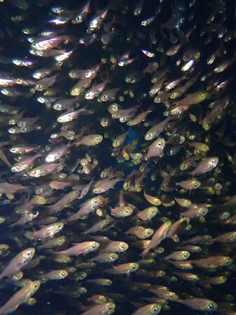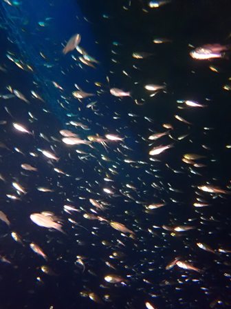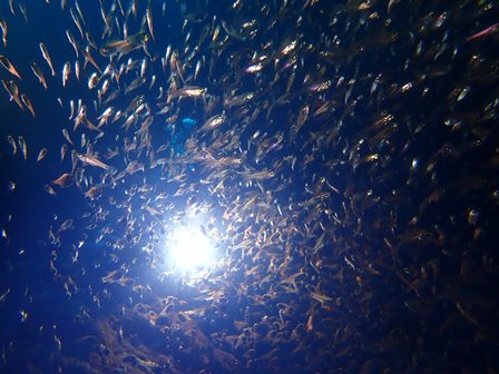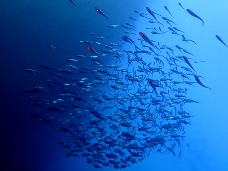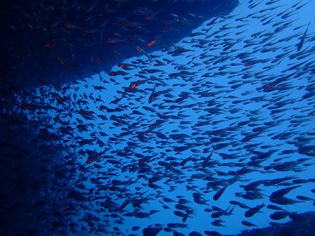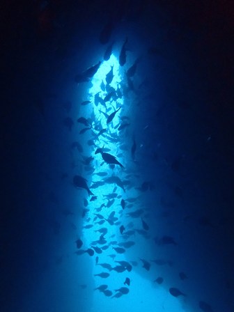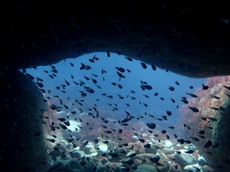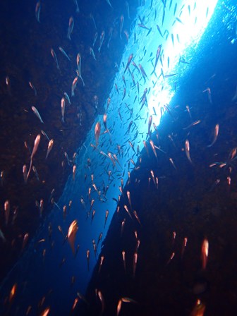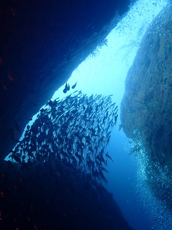 生物:イロカエルアンコウ・オオウミウマ・ヘビギンポ・チャシボリガイ・サッパ?の群れ・イシガキフグの群れ・イサキの群れ・キビナゴの群・ネンブツダイygの群れ・スズメダイの群れ・ソラスズメダイygの群れ・イッセンタカサゴygの群れ・コガネスズメダイの群れ・キンギョハナダイの群れ・オオモンハタの群れ・イスズミの群れ・メジナの群れ・ホウライヒメジの群れ・キンメモドキの群れ・ツマグロハンポの群れ 他