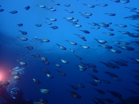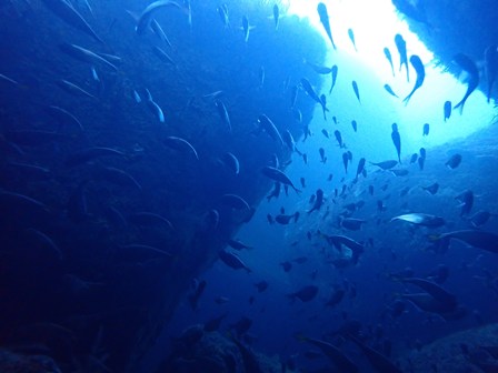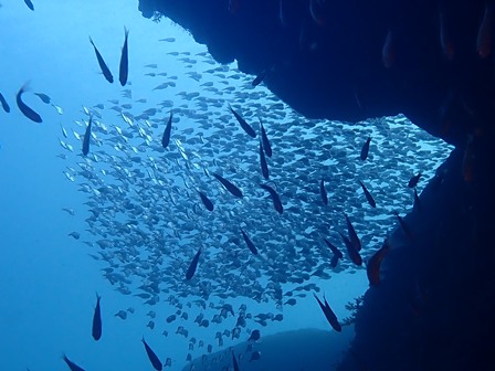 生物:サクラテンジクダイ・タコ・コロダイ・テングダイ・ミツイラメリウミウシ・ミスガイ・チャシボリガイ・サッパ?の群れ・イシガキフグの群れ・イサキの群れ・キビナゴの群・ネンブツダイygの群れ・スズメダイの群れ・ソラスズメダイygの群れ・イッセンタカサゴygの群れ・コガネスズメダイの群れ・キンギョハナダイの群れ・オオモンハタの群れ・イスズミの群れ・メジナの群れ・ホウライヒメジの群れ・キンメモドキの群れ・ツマグロハンポの群れ 他