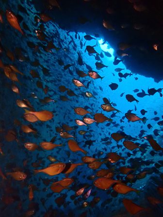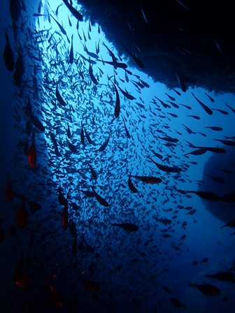 生物:クロヘリアメフラシ・オルトマンワラエビ・サクラテンジクダイの群れ・クリアクリーナーシュリンプの群れ・アオリイカの群れ・イシガキフグの群れ・コロダイの群れ・タカベの群れ・キビナゴの群れ・ネンブツダイygの群れ・スズメダイの群れ・ソラスズメダイygの群れ・イッセンタカサゴygの群れ・コガネスズメダイの群れ・キンギョハナダイの群れ・オオモンハタの群れ・イスズミの群れ・メジナの群れ・ホウライヒメジの群れ・キンメモドキの群れ・ツマグロハンポの群れ 他