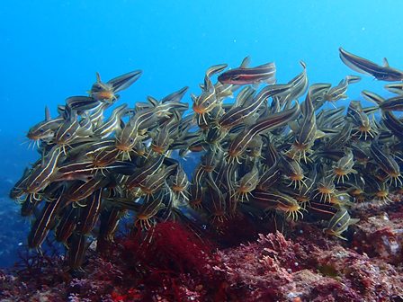 生物:オルトマンワラエビ・サクラテンジクダイ・クリアクリーナーシュリンプ・イタチウオ・イシガキフグの群れ・コロダイの群れ・タカベの群れ・キビナゴの群れ・ネンブツダイygの群れ・スズメダイの群れ・ソラスズメダイygの群れ・イッセンタカサゴygの群れ・コガネスズメダイの群れ・キンギョハナダイの群れ・オオモンハタの群れ・イスズミの群れ・メジナの群れ・ホウライヒメジの群れ・キンメモドキの群れ・ツマグロハンポの群れ 他