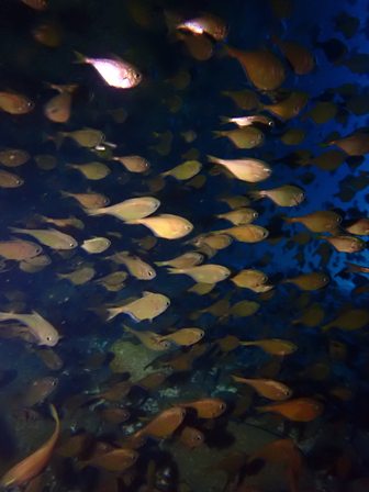 生物:コショウダイ・ヘダイ・イシダイ・トラウツボ・サクラテンジクダイの群れ・クリアクリーナーシュリンプの群れ・カサゴの群れ・イシガキフグの群れ・コロダイの群れ・タカベの群れ・キビナゴの群れ・ネンブツダイygの群れ・スズメダイの群れ・ソラスズメダイygの群れ・イッセンタカサゴygの群れ・コガネスズメダイの群れ・キンギョハナダイの群れ・オオモンハタの群れ・イスズミの群れ・メジナの群れ・ホウライヒメジの群れ・キンメモドキの群れ・ツマグロハンポの群れ 他