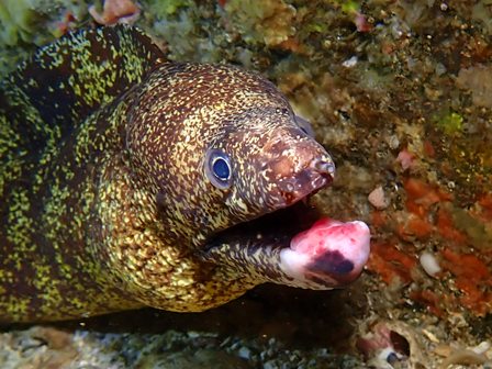 生物:ミヤコウミウシ・サラサウミウシ・ウツボ・トラウツボ・イタチウオ・キタマクラyg・ネンブツダイygの群れ・クロホシイシモチの群れ・ゴンズイの群れ・キンギョハナダイの群れ・イスズミygの群れ・キンメモドキの群れ・ツマグロハンポの群れ 他