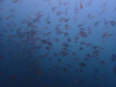 生物:メリベウミウシ・ヤグルマウミウシ・ベッコウヒカリウミウシ・ヒロウミウシ・イシガキダイ・コロダイ・タカノハダイ・テングダイ・クロヘリアメフラシの群れ・ゴンズイの群れ・ホウライヒメジの群れ・ネンブツダイygの群れ・クロホシイシモチの群れ・ゴンズイの群れ・キンギョハナダイの群れ・イスズミygの群れ・キンメモドキの群れ・ツマグロハンポの群れ 他